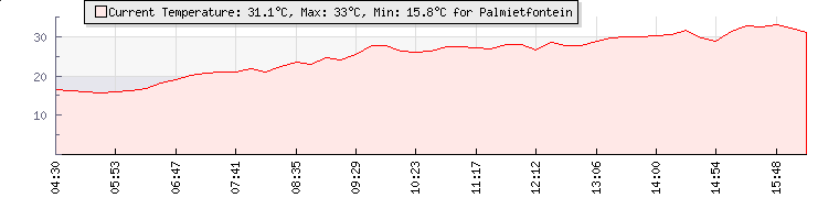 | GPS Co-ordinates: | S 23º 59' 16, E 29º 27' 01 | | ASL: | 4528 feet | | Sunrise / Sunset: | 05:36 / 18:53 | | Beaufort Scale: | Light Air |
