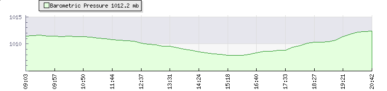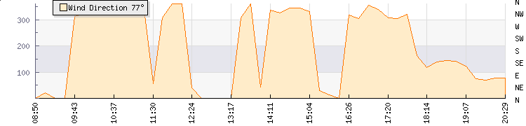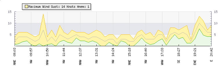 In the last few minutes the wind was South Easterly at an average speed of 5 knots, reaching up to 7 knots and a low of 3 knots. The gust strength is4 knots above the minimum speed |