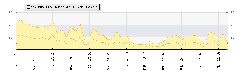In the last few minutes the wind was East North East at an average speed of 4 kmh, reaching up to 8 kmh and a low of 0 kmh. The gust strength is8 kmh above the minimum speed |