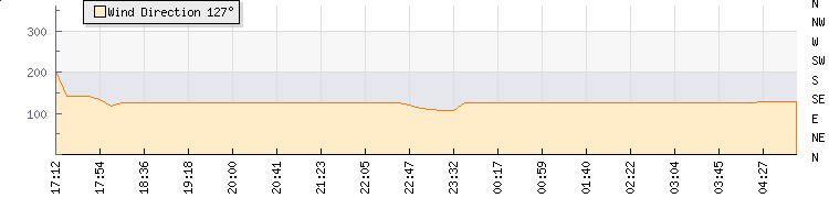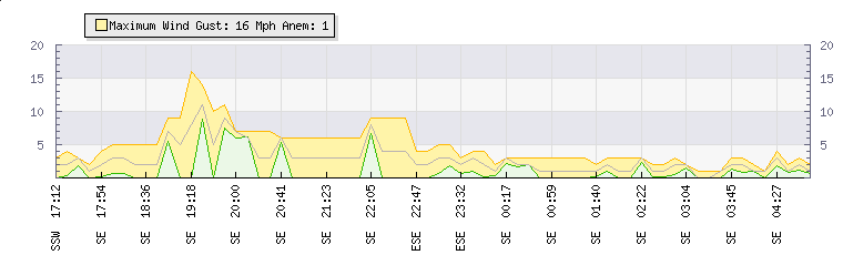 In the last few minutes the wind was South Easterly at an average speed of 1 mph, reaching up to 1 mph and a low of 0 mph. The gust strength is1 mph above the minimum speed |