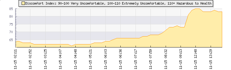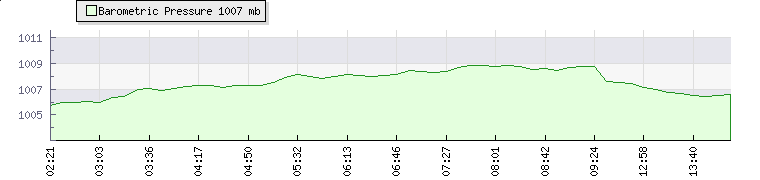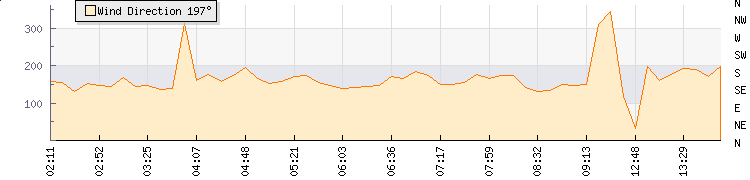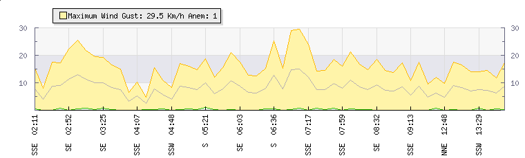 In the last few minutes the wind was North Westerly at an average speed of 9 kmh, reaching up to 18 kmh and a low of 0 kmh. The gust strength is18 kmh above the minimum speed |