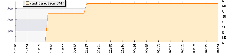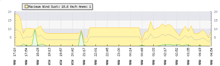 In the last few minutes the wind was North North West at an average speed of 3 kmh, reaching up to 6 kmh and a low of 1 kmh. The gust strength is5 kmh above the minimum speed |