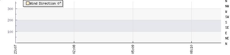 In the last few minutes the wind was North North West at an average speed of 0 knots, reaching up to 0 knots and a low of 0 knots. The gust strength is0 knots above the minimum speed |