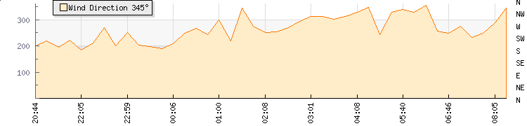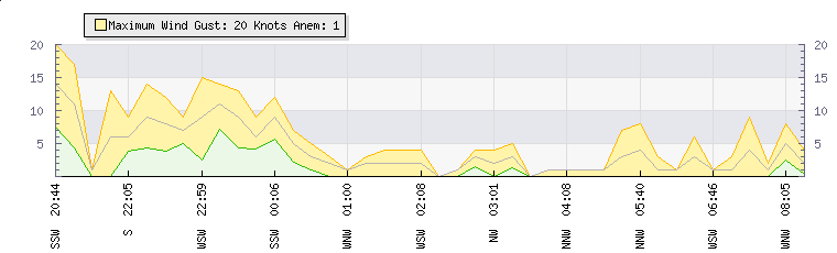 In the last few minutes the wind was North North West at an average speed of 4 knots, reaching up to 8 knots and a low of 0 knots. The gust strength is8 knots above the minimum speed |
