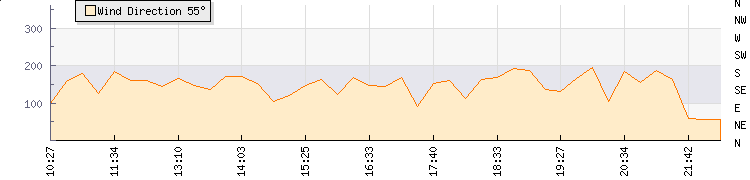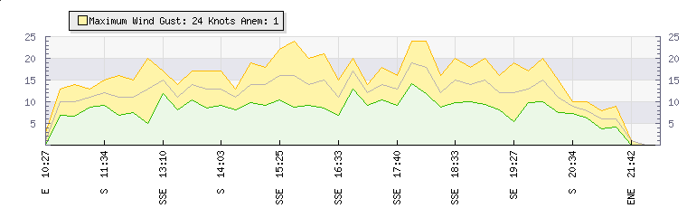 In the last few minutes the wind was South South West at an average speed of 15 knots, reaching up to 20 knots and a low of 10 knots. The gust strength is10 knots above the minimum speed |