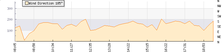In the last few minutes the wind was Southerly at an average speed of 19 knots, reaching up to 26 knots and a low of 12 knots. The gust strength is14 knots above the minimum speed |