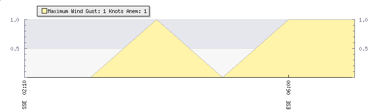 In the last few minutes the wind was South South West at an average speed of 1 knots, reaching up to 1 knots and a low of 0 knots.  The gust strength is1 knots above the minimum speed             |