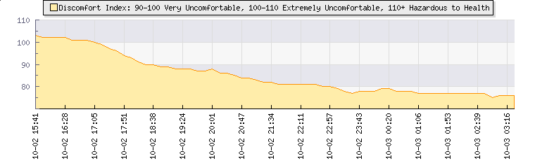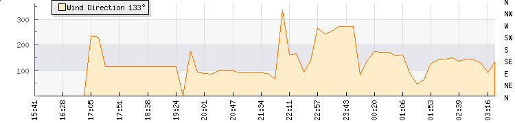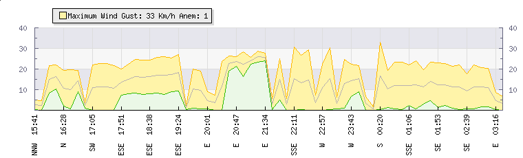 In the last few minutes the wind was South Easterly at an average speed of 12 kmh, reaching up to 23 kmh and a low of 2 kmh. The gust strength is21 kmh above the minimum speed |
