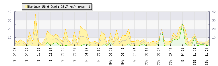 In the last few minutes the wind was Northerly at an average speed of 3 kmh, reaching up to 6 kmh and a low of 0 kmh. The gust strength is6 kmh above the minimum speed |