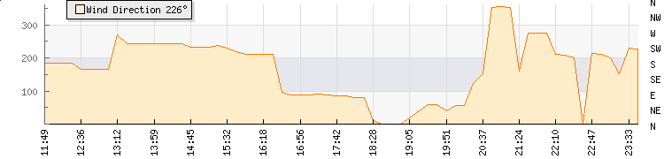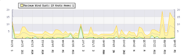 In the last few minutes the wind was Westerly at an average speed of 1 knots, reaching up to 3 knots and a low of 0 knots. The gust strength is3 knots above the minimum speed |