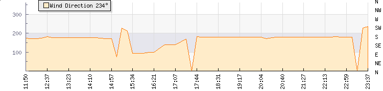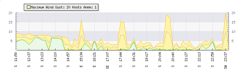 In the last few minutes the wind was Southerly at an average speed of 3 knots, reaching up to 5 knots and a low of 1 knots. The gust strength is4 knots above the minimum speed |