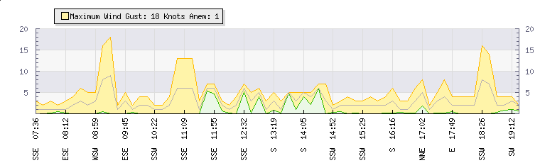 In the last few minutes the wind was South Westerly at an average speed of 3 knots, reaching up to 4 knots and a low of 1 knots. The gust strength is3 knots above the minimum speed |