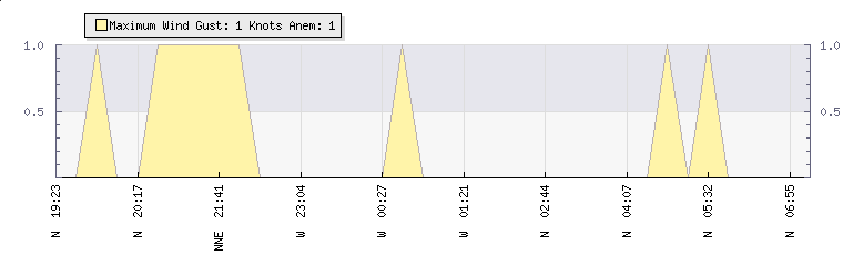 | Last Update: | 2025-10-31 23:04:07 |  | Weather Summary: | In the last few minutes the wind was Westerly at an average speed of 0 knots, reaching up to 0 knots and a low of 0 knots.  The gust strength is0 knots above the minimum speed |  |