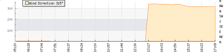 In the last few minutes the wind was Northerly at an average speed of 6 kmh, reaching up to 9 kmh and a low of 4 kmh. The gust strength is5 kmh above the minimum speed |