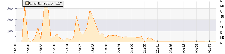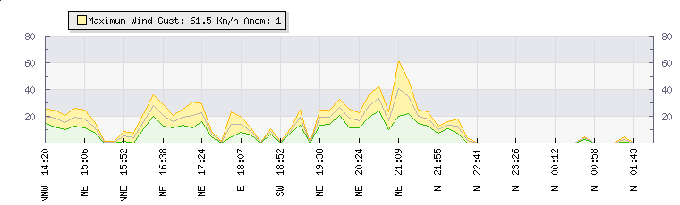 In the last few minutes the wind was Northerly at an average speed of 4 kmh, reaching up to 5 kmh and a low of 3 kmh. The gust strength is2 kmh above the minimum speed |