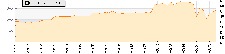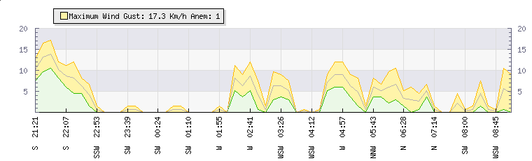 In the last few minutes the wind was Northerly at an average speed of 3 kmh, reaching up to 5 kmh and a low of 2 kmh. The gust strength is3 kmh above the minimum speed |