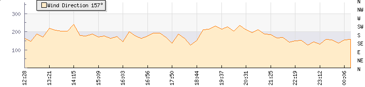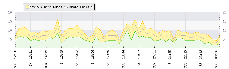 In the last few minutes the wind was South South West at an average speed of 8 knots, reaching up to 10 knots and a low of 6 knots. The gust strength is4 knots above the minimum speed |