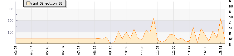 In the last few minutes the wind was Northerly at an average speed of 0 mph, reaching up to 0 mph and a low of 0 mph. The gust strength is0 mph above the minimum speed |