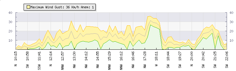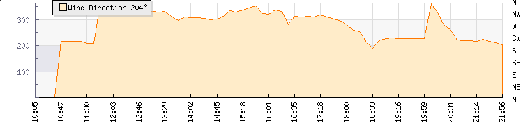 In the last few minutes the wind was South Westerly at an average speed of 4 kmh, reaching up to 8 kmh and a low of 0 kmh. The gust strength is8 kmh above the minimum speed |