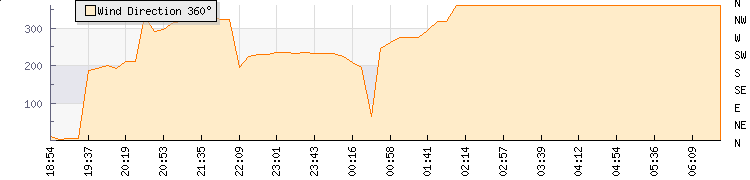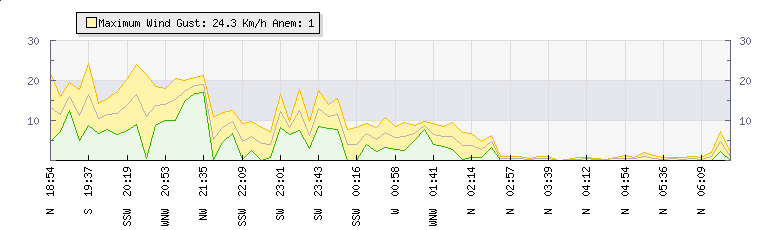 In the last few minutes the wind was Northerly at an average speed of 1 kmh, reaching up to 1 kmh and a low of 0 kmh. The gust strength is1 kmh above the minimum speed |