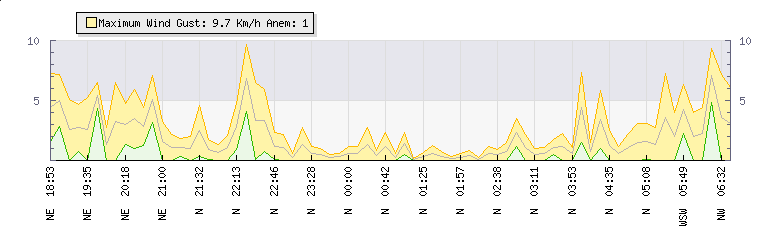 In the last few minutes the wind was Northerly at an average speed of 1 kmh, reaching up to 3 kmh and a low of 0 kmh. The gust strength is3 kmh above the minimum speed |
