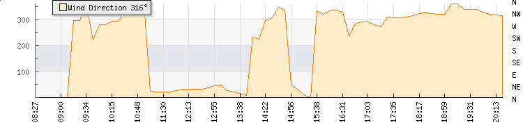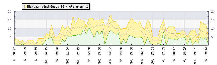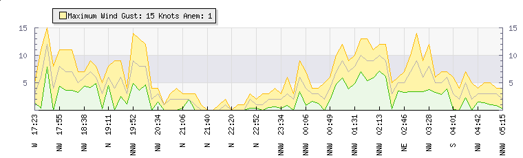 In the last few minutes the wind was Northerly at an average speed of 6 knots, reaching up to 8 knots and a low of 5 knots. The gust strength is3 knots above the minimum speed |