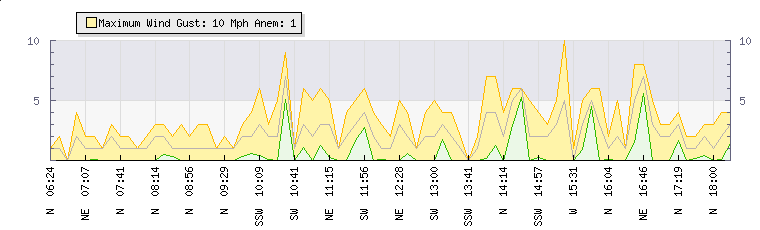 In the last few minutes the wind was Northerly at an average speed of 1 mph, reaching up to 2 mph and a low of 0 mph. The gust strength is2 mph above the minimum speed |
