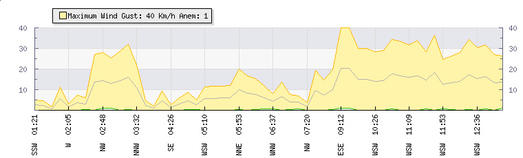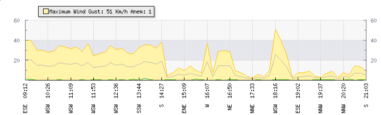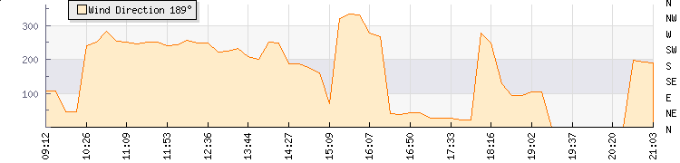 In the last few minutes the wind was North North East at an average speed of 2 kmh, reaching up to 3 kmh and a low of 0 kmh. The gust strength is3 kmh above the minimum speed |