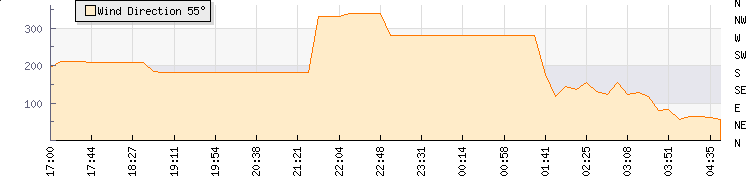 In the last few minutes the wind was East South East at an average speed of 3 knots, reaching up to 5 knots and a low of 0 knots. The gust strength is5 knots above the minimum speed |