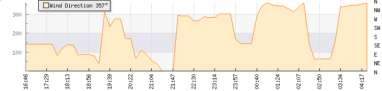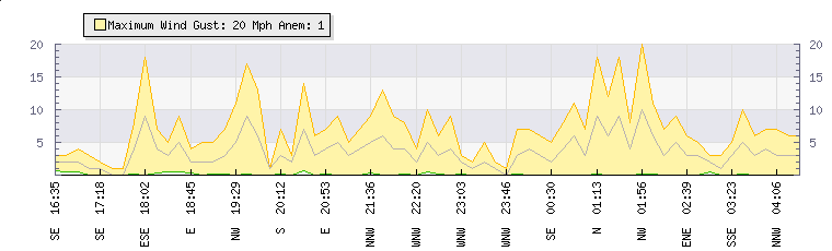 In the last few minutes the wind was East North East at an average speed of 2 mph, reaching up to 3 mph and a low of 1 mph. The gust strength is2 mph above the minimum speed |