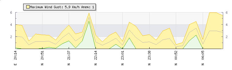 In the last few minutes the wind was Northerly at an average speed of 1 kmh, reaching up to 2 kmh and a low of 0 kmh. The gust strength is2 kmh above the minimum speed |