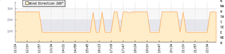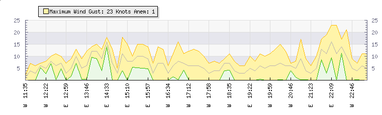 In the last few minutes the wind was Easterly at an average speed of 5 knots, reaching up to 9 knots and a low of 0 knots. The gust strength is9 knots above the minimum speed |