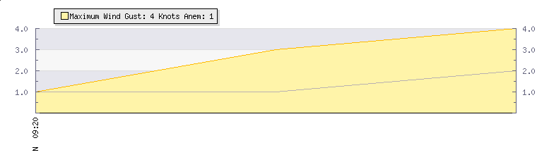 In the last few minutes the wind was Easterly at an average speed of 2 knots, reaching up to 4 knots and a low of 0 knots. The gust strength is4 knots above the minimum speed |