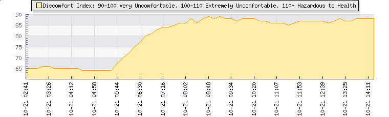 Wind Gust: | 2 km/h | Min Temp: | 14.1 °C | Max Temp: | 16.1 °C | Wind Average: | 1 km/h | Min Hum: | 78 % | Max Hum: | 84 % | |  |