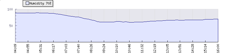 | Wind Gust: | 8 knots | Min Temp: | 18 °C | Max Temp: | 18.7 °C | | Wind Average: | 6 knots | Min Hum: | 86 % | Max Hum: | 89 % | |  |
