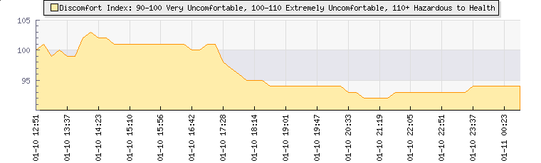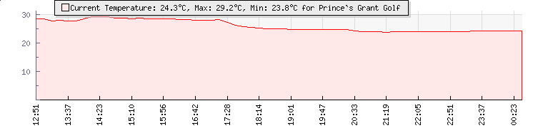 | Wind Gust: | 20 mph | Min Temp: | 21.3 °C | Max Temp: | 26.3 °C | | Wind Average: | 12 mph | Min Hum: | 73 % | Max Hum: | 93 % | |  |