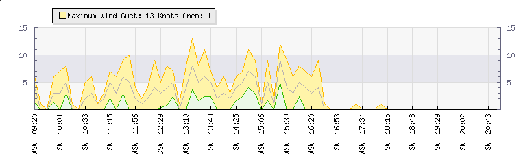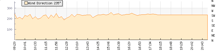 In the last few minutes the wind was South Westerly at an average speed of 0 knots, reaching up to 0 knots and a low of 0 knots. The gust strength is0 knots above the minimum speed |