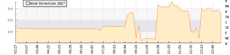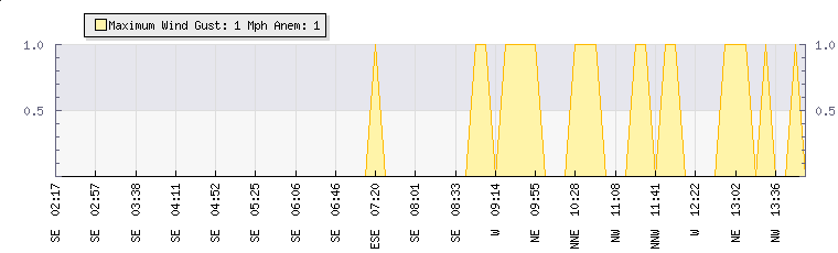 In the last few minutes the wind was South Easterly at an average speed of 0 mph, reaching up to 0 mph and a low of 0 mph. The gust strength is0 mph above the minimum speed |