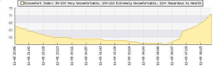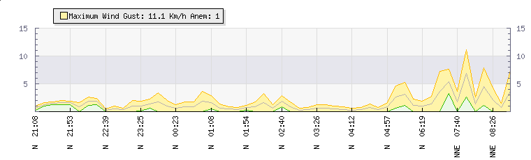 In the last few minutes the wind was Northerly at an average speed of 1 kmh, reaching up to 3 kmh and a low of 0 kmh. The gust strength is3 kmh above the minimum speed |