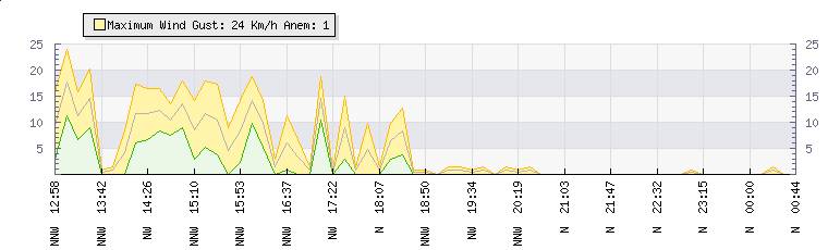 In the last few minutes the wind was Northerly at an average speed of 0 kmh, reaching up to 0 kmh and a low of 0 kmh. The gust strength is0 kmh above the minimum speed |