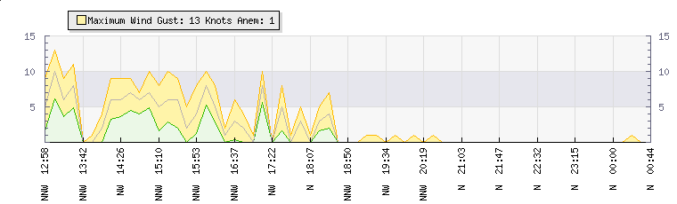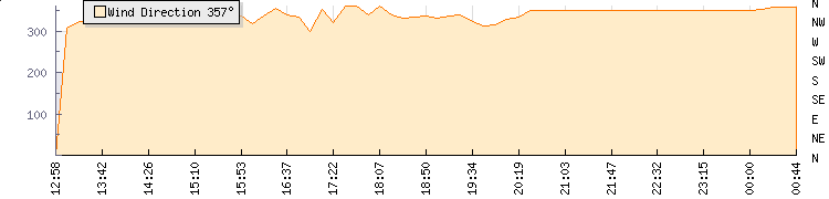 In the last few minutes the wind was Northerly at an average speed of 0 knots, reaching up to 0 knots and a low of 0 knots. The gust strength is0 knots above the minimum speed |