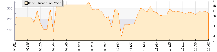In the last few minutes the wind was South South West at an average speed of 8 mph, reaching up to 11 mph and a low of 5 mph. The gust strength is6 mph above the minimum speed |