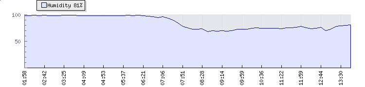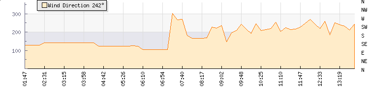 In the last few minutes the wind was Westerly at an average speed of 5 mph, reaching up to 8 mph and a low of 1 mph. The gust strength is7 mph above the minimum speed |