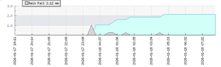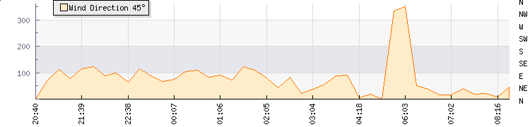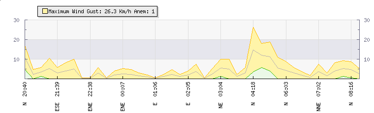 In the last few minutes the wind was North North East at an average speed of 1 kmh, reaching up to 2 kmh and a low of 0 kmh. The gust strength is2 kmh above the minimum speed |