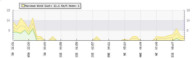 In the last few minutes the wind was North Easterly at an average speed of 1 kmh, reaching up to 2 kmh and a low of 0 kmh. The gust strength is2 kmh above the minimum speed |