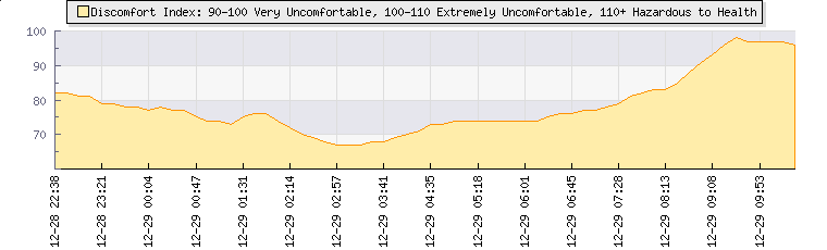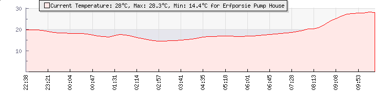 | Wind Gust: | 2 km/h | Min Temp: | 14.4 °C | Max Temp: | 20.3 °C | | Wind Average: | 1 km/h | Min Hum: | 90 % | Max Hum: | 97 % | |  |