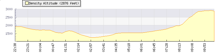| Wind Speed: | 0|1|2 kmh | Wind Direction: | S 177° | Temperature: | 20.2°C | | Wet Bulb: | 19°C | Discomfort: | 83 | Humidity: | 90% | | Rainfall Today: | 0mm | 12 hrs Rainfall: | 0mm | 24 hrs Rainfall: | 0mm | | Barometer: | 1000mb | Dew Point: | 18.5°C | Clouds AGL: | 678ft (207 m) | | Density-Alt: | 1959ft (597 m) | Fire Danger: | |