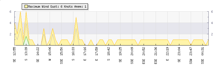 | Wind Gust: | 9 knots | | | Wind Average: | 6 knots | | |  |