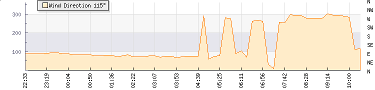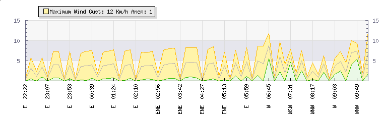 In the last few minutes the wind was Westerly at an average speed of 1 kmh, reaching up to 2 kmh and a low of 0 kmh. The gust strength is2 kmh above the minimum speed |