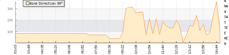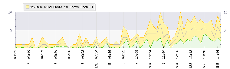 In the last few minutes the wind was South South East at an average speed of 6 knots, reaching up to 9 knots and a low of 3 knots. The gust strength is6 knots above the minimum speed |